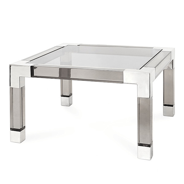 This is the perfect table to set between two chairs or at the end of a sofa because of its subtle and sophisticated details-- details that make all the difference in the world when pulling a living space together. In smoke hued acrylic with polished nickel detail. Originally $1450, $699.99