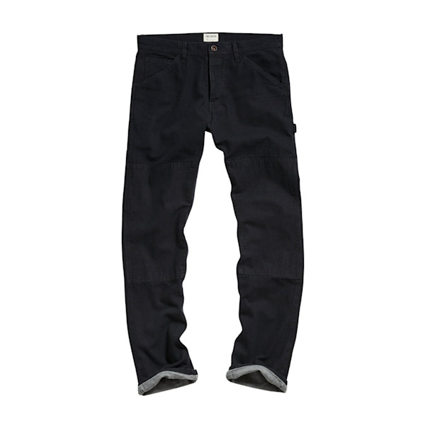Based on a vintage shop pant, the silhouette is loaded with hard-working design details including double reinforced knees, a hammer loop, a tool pocket and double needle construction for durable seams. The exterior fabric is a rugged cotton canvas that has been washed for a slightly broken-in look and feel, and it comes to us from the textile gurus at Three Looms. The interior features a soft flannel lining which makes these both warm and soft against your legs. The cut is similar to our Straight Fit pants but with a slightly wider leg and cuff opening. In short, a great workwear style for cooler weather.