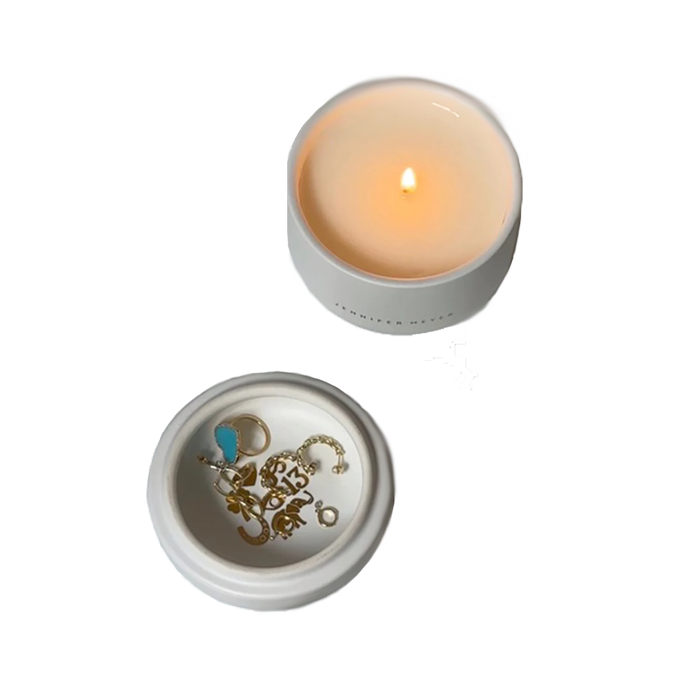 Two reasons why we love this candle: it's unique scent, and the matte ceramic vessel in comes in, which, upon burning, will then double as a place to hold jewelry. Adorned with Jennifer Meyer's iconic good luck motif, the jewelry designer with a cult following combined top notes of cranberry, strawberry, and coconut water with layers of waterlily and white floral accord to create a scent that represents her childhood memories of growing up at the beach. Soy-paraffin wax llend, vegan and cruelty free. 45 hour burn time. Jennifer Meyer branded matches included with all candles. Packaged in a presentation box which makes it great for gifting. 15% off with code JEN15 for Story + Rain followers.