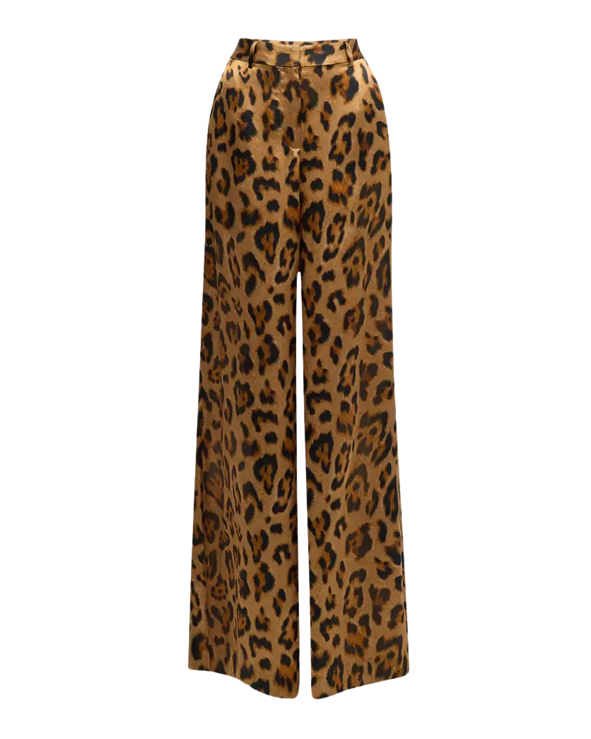 L'Agence Pilar Silk Wide-Leg Pants in Leopard