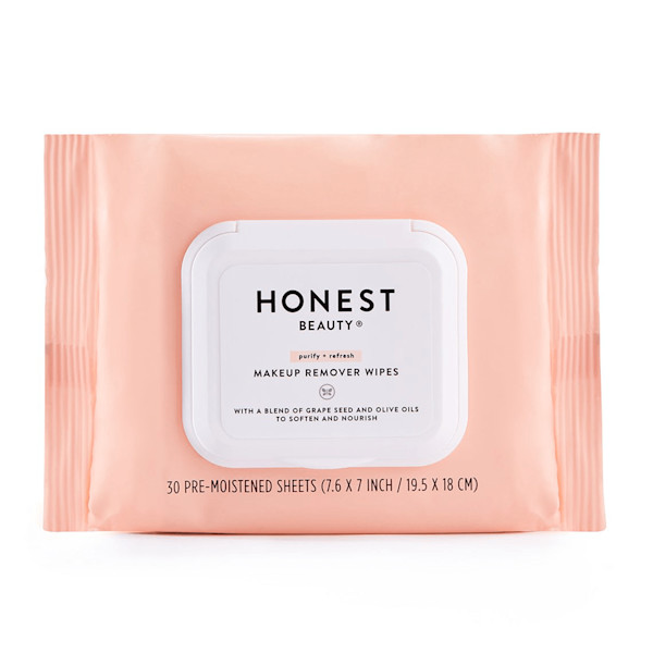 Skincare 101: remove makeup daily. No matter where you are or how late you’re up, a clean slate at the end of the day is an essential step toward a happy complexion. Infused with a blend of grape seed and olive oils, Honest Beauty's time-saving facial wipes lift away makeup, dirt and oil without over drying skin.