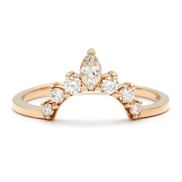 The Marquise Tiara’s crowning jewel is, in fact, its central feature - the namesake marquise shaped stone. The delicate arc is made by three graduated round diamonds at either side, making for quite the statement nesting band or the regal addition to any engagement ring- be it round, oval, emerald or pear in shape.