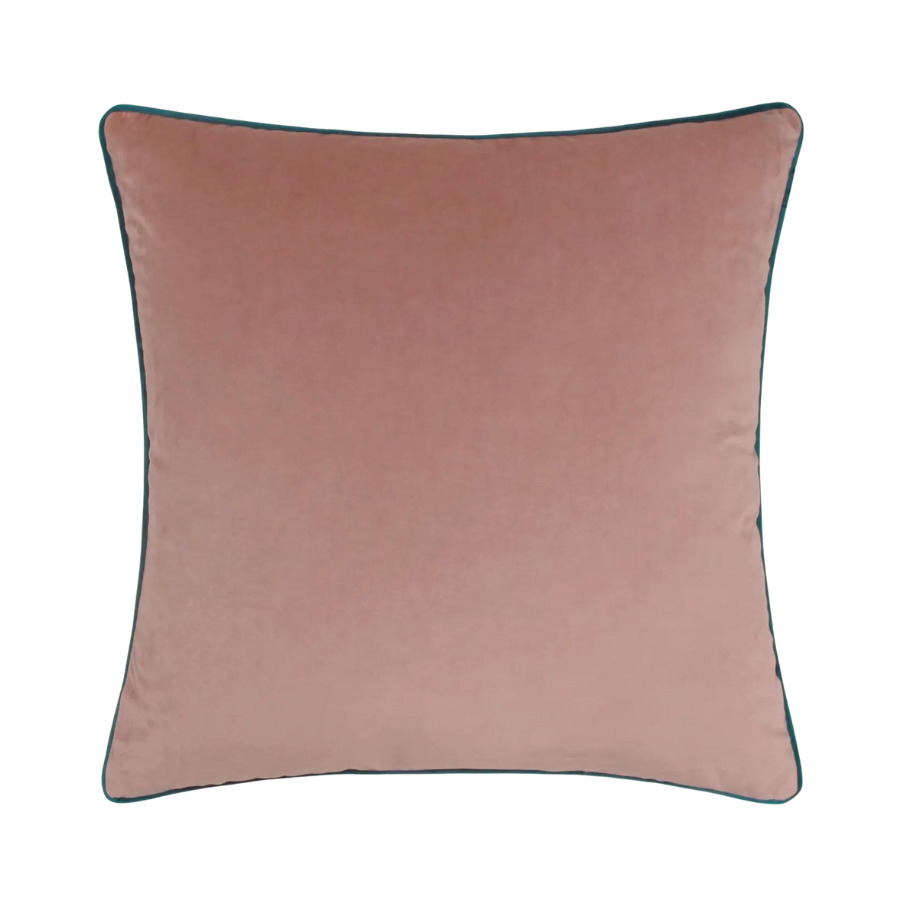 Made of soft velvet fabric these larger-than-average throw pillows features a plain front and contrasting piped edges.