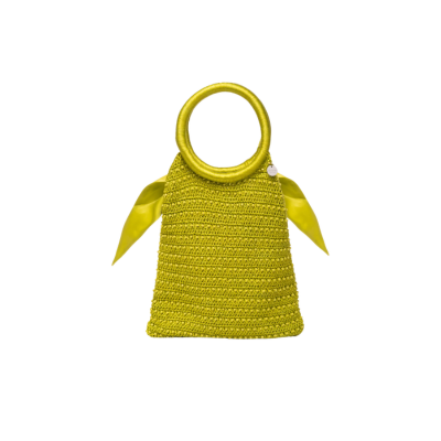 The Maris Bag is crafted in viscose cord and showcases intricate hand macramé, accented with bead embellishments for rich texture. A wrapped handle and removable cotton poplin bag insert add thoughtful functionality, making it a striking accessory that elevates both everyday looks and special occasions. The Lime colorway is a cheerful chartreuse green.