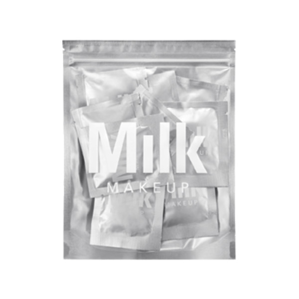 Biodegradable portable single wipes cleanse the skin using micellar action to entrap and lift impurities from the skin, sweeping away makeup and debris. Intelligent design for modern skincare. A technologically advanced and highly effective cleansing system using non-ionic micellar action in convenient portable individual packets. Micellar wipes are perfect for touch-ups and removing everyday face, eye and lip products. We recommend using an oil-based makeup remover for long wearing products like the Weekend Lash Stain, Eye Pigment, Lip Marker and Eye Marker. Open packet, unfold wipe and sweep over skin. No rinsing needed. 20 wipes. All Milk Makeup products are cruelty-free.