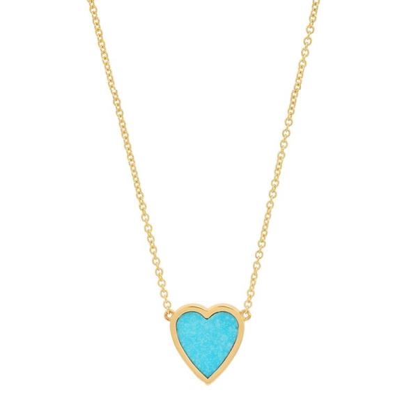 The mini turquoise inlay heart necklace is set in 18-karat yellow gold and fixed to a delicate 14-karat link chain. Known for its protective qualities, each natural stone is one-of-a-kind and may vary slightly from piece to piece. A symbol of love, it's the perfect gift for yourself or someone special.