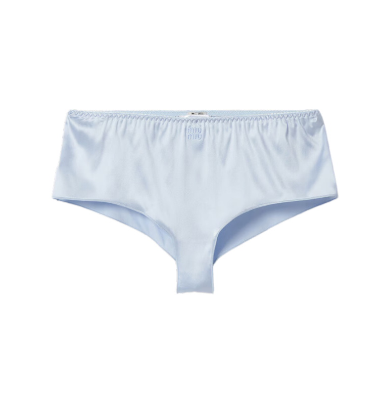 The embroidered Miu Miu logo stands out against the sleek lines of this satin panty thanks to its iconic and distinctive note.