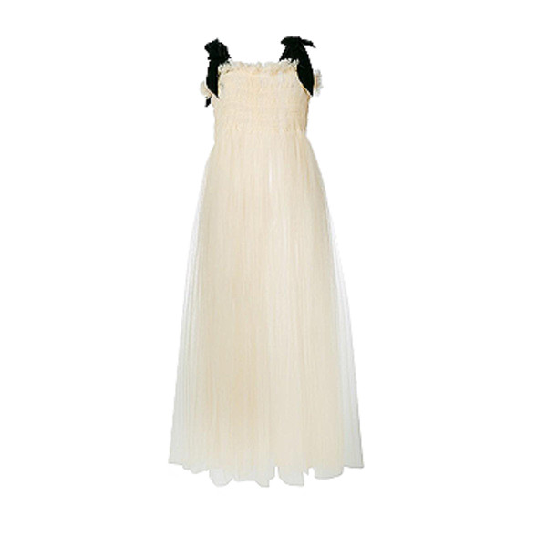 This gold Molly Goddard velvet strap tulle dress...if you are yet to be swooned by the British designer then prepare to fall head over heels for this wistful number. After all, can you picture anything else more dreamy and romantic than this dress? We didn't think so. Fabricated in the UK and inspired by '60s Japanese cult classic Tokyo Drifter, this sleeveless frock has been designed from gold tulle complete with a smocked bodice, a square neckline and black velvet shoulder straps. We'll be wearing our Molly Goddard dress over a black Saint Laurent t-shirt and jeans to the next magazine launch party.