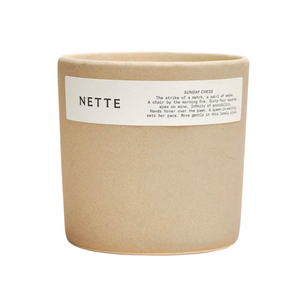 Sunday Chess smells like incense and vanilla with notes of patchouli, resins, and amber. Each candle is made from non-toxic, coconut-soy wax and poured in a vessel by a family-owned glass blowing company in Italy who makes all their glass vessels by hand, or a ceramicist in Philadelphia who creates their ceramic vessels.