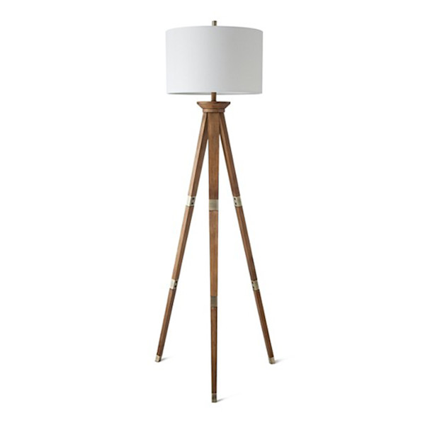 Give your home the modern look you love by adding the Oak Wood Tripod Floor Lamp from Threshold to any room. Standing tall on three tapered legs, this modern floor lamp features a light wood base paired with a simple white lampshade for the perfect touch of modern chic. Pair beside other modern furniture like an accent chair with angled legs, or let it shine on its own in the corner of your living room to brighten up the space. Shade Top Dimensions: 10.000 inches H Body Material: Wood Shade Material: Linen, Cotton, Polyester Switch Type: socket turn knob rotary switch Maximum Light Bulb Wattage: 150 watts Cord Covering Type: Plastic Battery Information: no battery used California Title 20: not subjected to CA Title 20 Number of Light Bulbs: 1 Assembled Dimensions: 60.000 inches H x 16.000 inches W x 17.500 inches D
