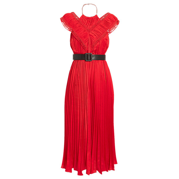 In the mood to feel extra pretty? Look no further than this pleated red dress. We’re love, love, loving this fiery hue right now—it’s fun and bold and the wardrobe boost you may not have even known you needed…until now. With cutout lace trims and a faux leather belt, it’s perfectly paired with strappy sandals or kitten heeled boots.