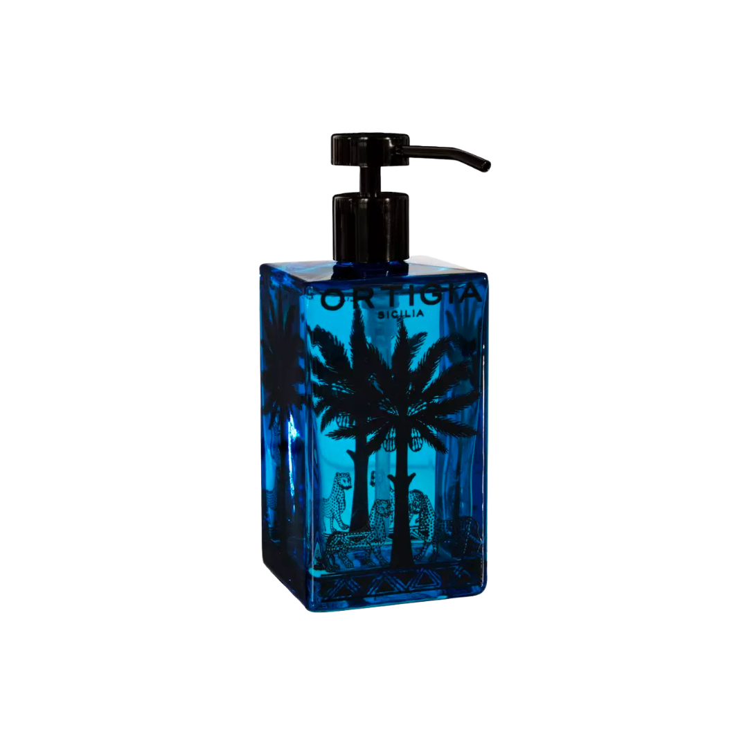 Ortigia's boldly designed products seemed to follow me wherever I went while on vacation in Sicily, so I brought some home with me. This liquid soap is enriched with olive oil, scented with narcissus, jasmine and wild iris, and comes in a heavyweight reusable glass bottle festively adorned with the brand's signature palm trees + animals. -Tamara