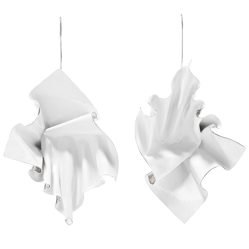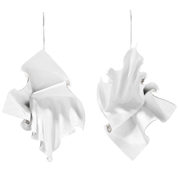 "Designer Wing Yau says:These earrings are eye-catching for so many reasons -- they're so sculptural, they're light, and they also swing like a beautiful mobile. The silver has a luxurious shine to it, meanwhile the hand-painted white adds an extra layer of understated sophistication."