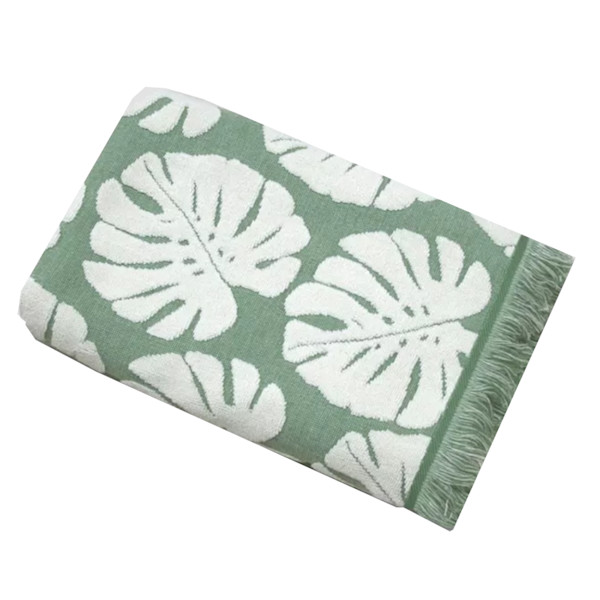 Bring a relaxing aura to your bathroom decor with this Palm Leaf Towel from Threshold™. Made from 100% cotton with a terry weave, this printed cotton towel feels soft against the skin while helping with absorbency as you dry off. Featuring a bold palm-leaf pattern on a soothing green background with a delicate fringe border, this cream and green towel brings excitement to your everyday bath and spruces up your bathroom decor.