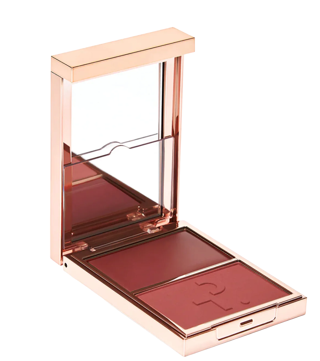 Patrick Ta's viral duo compact of powder and cream blush formulas to achieve long-wearing bold color that melts into skin for a beautiful, radiant glow in deep plum.
