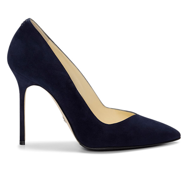The Sarah Flint perfect pump is 100mm (4 inches). Fits true to size, the initial fit should be comfortably snug as this shoe will stretch in width with wear. Handcrafted in Italy. Triple-dyed Italian suede upper, leather lining and insole, leather outsole with full rubber forepart.