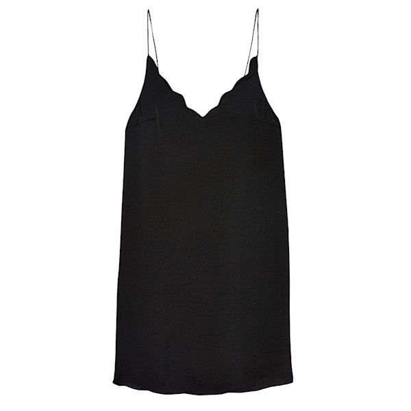 A minimal black slip dress is an essential piece in every woman’s wardrobe. With a scallop neckline and in a mini length, you can layer this one with a tee for a casual daytime look or turn up its sex appeal with stiletto sandals and hoop earrings. Added bonus? It's machine washable.