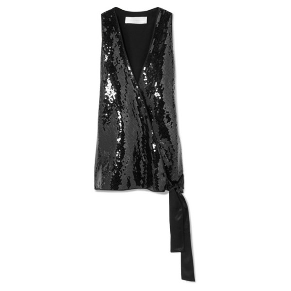 Victoria, Victoria Beckham's top has a Studio 54 feel – we can just imagine the sequins sparkling beneath disco lights. Perfect for getting through party season, this elegant piece has a flattering wrap-effect front, glossy silk-satin trims and a smooth lining that feels so soft next to bare skin. Try not to over-complicate the styling - a pair of tailored pants or blue jeans is all you need.