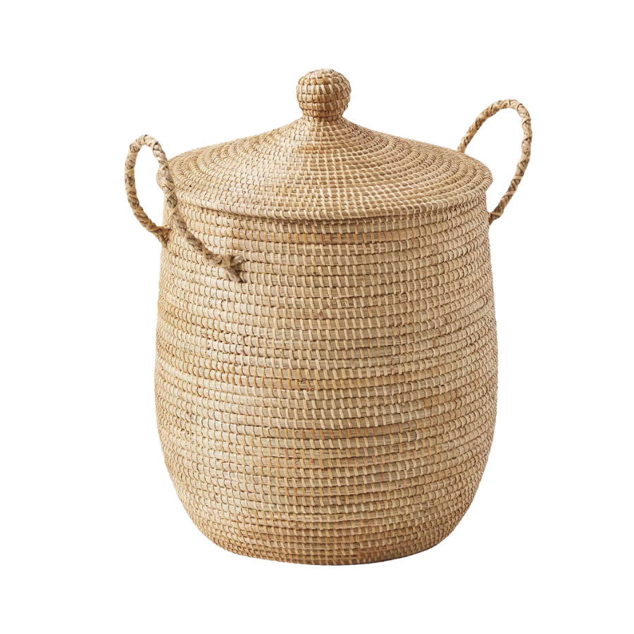 Inspired by classic market baskets, with a rounded shape, convenient handles, and an exquisitely crafted lid – this versatile basket is made entirely by hand. It’s lightweight yet sturdy, practical yet also incredibly beautiful.