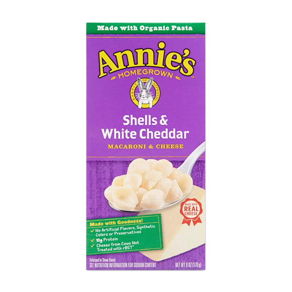 Introduced back in 1989, Annie’s Shells and White Cheddar is their original and best selling product. Annie created Shells and Cheddar in her kitchen when she realized there was no all-natural, white cheddar macaroni and cheese on the market. She came up with a totally delicious product that is made with 100% real white cheddar cheese and organic shell-shaped pasta. Perfect for the whole family, Annie’s Shells and White Cheddar Macaroni and Cheese is so yummy, even the picky eaters will lick their plates clean.