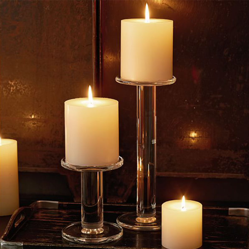 This beautiful clear glass holder makes the candle added to it truly stand out. Place many down the center of your table for a dramatic presentation.