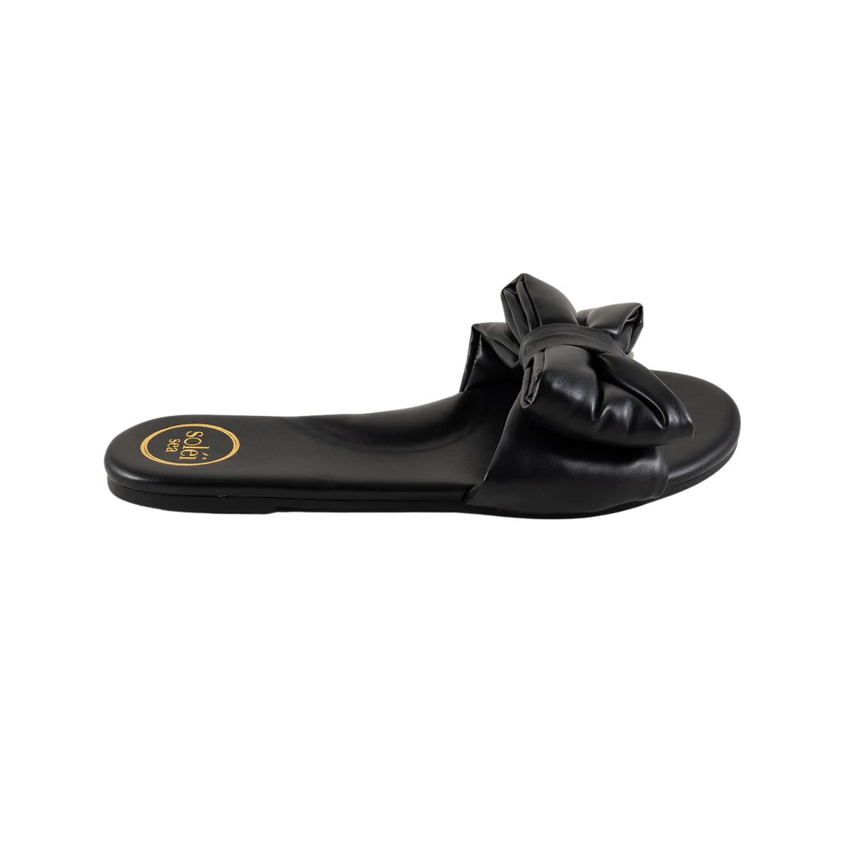 Solei Sea's super-packable shoes have a cushioned footbed, padded arch support, and non-slip rubber bottoms. Size up to the next size for a comfortable fit. In chic black, we love the fashion factor of these water-resistant vegan leather slip-ons with a bold bow. Made in Brazil.