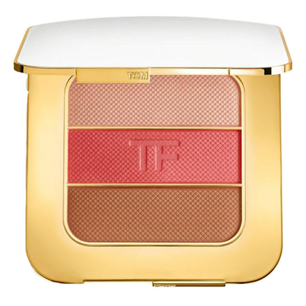Tom Ford's luxurious artisan face palette returns in soleil afterglow, three new sensual shades in one ivory and gold colored Tom Ford Soleil compact. The blush, highlighter, and bronzer add natural dimension and sensuous color in a cream-like powder formula that effortlessly glides into skin.