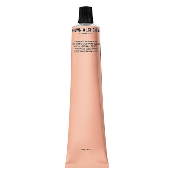 Grown Alchemist Soothing Hand Cream is composed of smoothing active ingredients which work to deeply hydrate hands and cuticles. This hand cream is formulated with nourishing aloe vera and cactus flower extract and Grown Alchemist's unique tri-hyaluronan complex to deeply hyrdate skin. This aromatic hand cream leaves your hands moisturized with a soft scent.