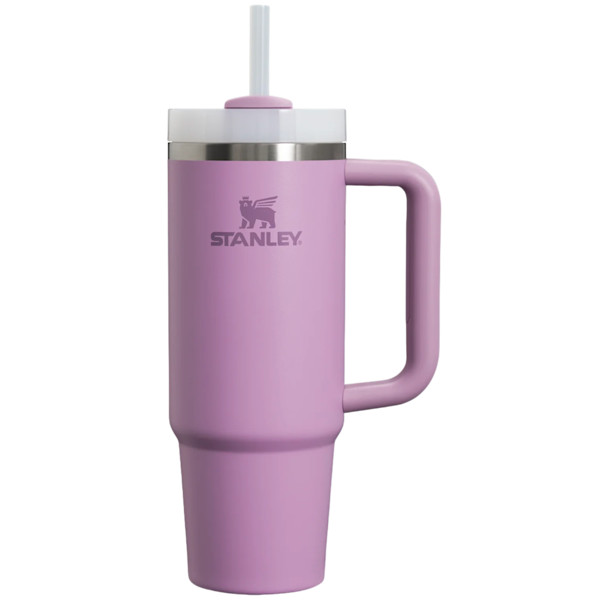 Stanley's popular Quencher H2.0 is generously sized, but not oversized, with an easy-carry, comfort grip handle and a narrow base that will fit most cup holders. A durable 30 oz tumbler made with recycled stainless steel features double-wall vacuum insulation to keep your water cold for nine hours and iced for forty hours. Advanced FlowState lid that features a rotating cover with three positions: a straw opening designed to resist splashes with a seal that holds the reusable straw in place, a drink opening, and a full-cover top. Customize it for a personal touch.
