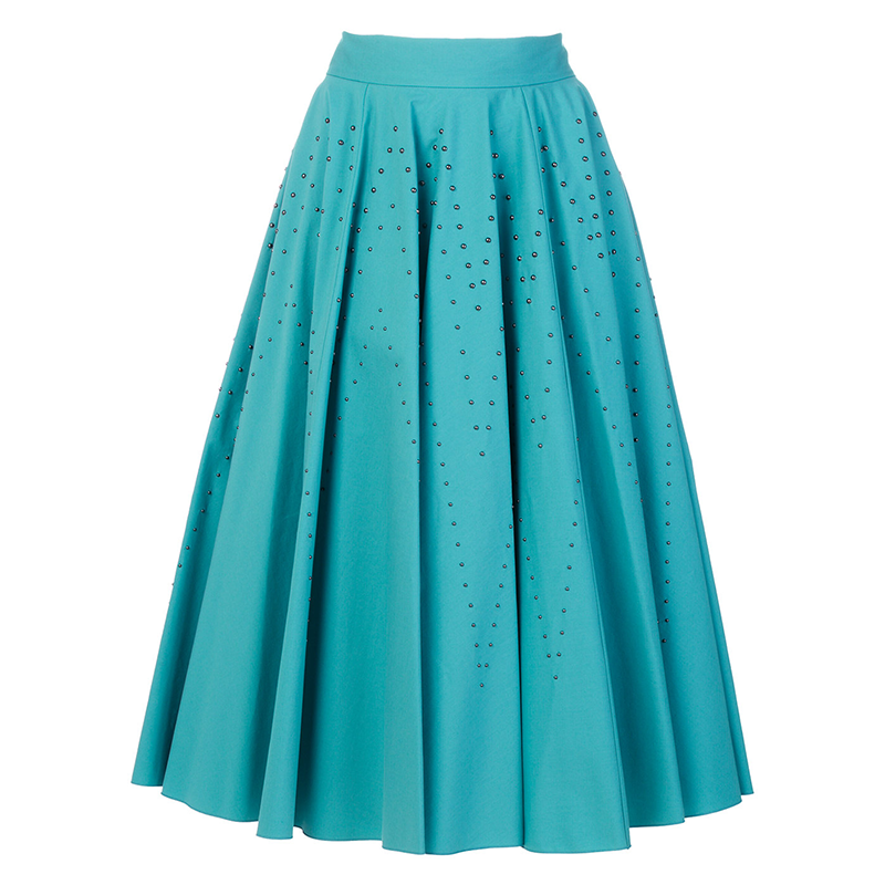 Bottega Veneta is known for its exquisite craftsmanship. This skirt, with sliver-tone stud detailing, is a beautiful example. In a flattering high waist, wear with a cropped sweater or a tucked-in knit.