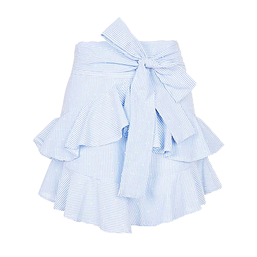 Mini skirt in pale blue with dobby base, skirt has 3 tiers of ruffles and tie at waist 100% Cotton. Machine washable.