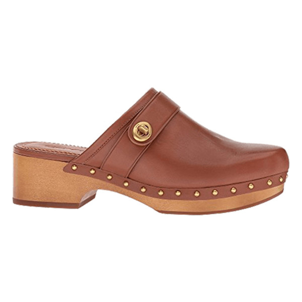Coach, the American design house known for their quality leather bags and shoes, has introduced a clog for the season with their signature turnlock detailing. In a “saddle” brown, we love the idea of pairing them with preppy pieces, like crisp white denim and tops in nautical stripes.