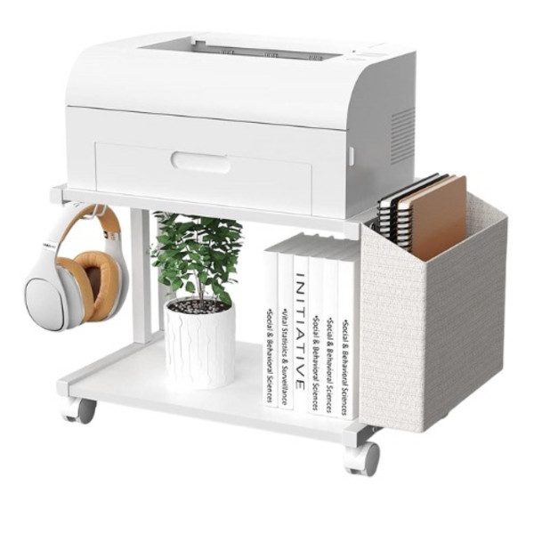 Ideal for small 3D printers, scanners, and other office supplies. The multifunctional desktop printer shelf can also be used for office organization, as a book shelf, a storage shelf, and more. The printer stand can be used as a desktop shelf or as an under desk organizer, and also provides an additional storage bag and iron hook. 15.8, Lx11, Wx11.