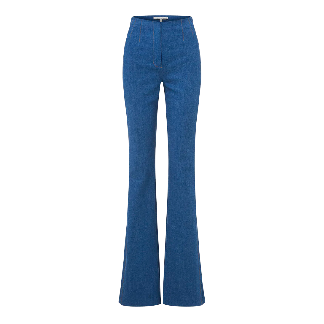 Veronica Beard's Royce pant is an elevated take on jeans, featuring a clean front, contrast-color stitching and a high rise, flared silhouette. Side vents at the ankles and stretch-denim fabrication create a long and lean look.