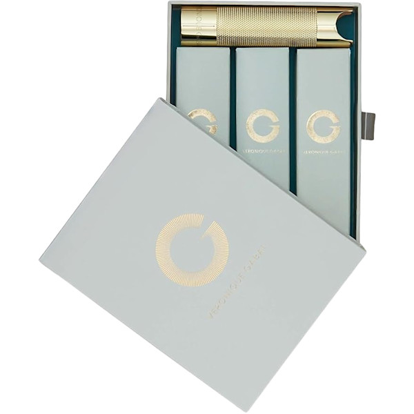 This chic set of decorative on-the-go atomizers encased in gold metal are filled with the most complex and sophisticated fragrances from Veronique Gabai. On the Beach has notes of range blossom, bergamot, magnolia, jasmine, tuberose, pink pepper, cedarwood. Eau du Jour has notes of lemon, bergamot, clary sage, maté, woods. Vert Désir is filled with notes of lemon, mint, absinthe, cedarwood.