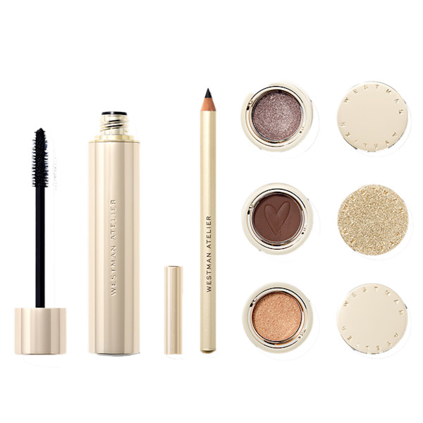 Westman Atelier's luxe eye kit features all you need for a touch of sparkle, a trace of definition, and pitch black lashes for the perfect party look. It features limited edition shadows, eyeliner, and mascara. Includes Eye Pods in Mink, Smudge, and Fête, which provide a range of neutral tones in matte and sparkling finishes, wearable for the holidays and beyond. The Eye Love You Eye Pencil glides on smoothly and blends seamlessly for the ultimate smoky effect. Eye Love You Mascara gives full and fluttery lashes. Made with clean, high performance ingredients, the Westman Atelier brand is known for makeup that is effortless and never overdone.