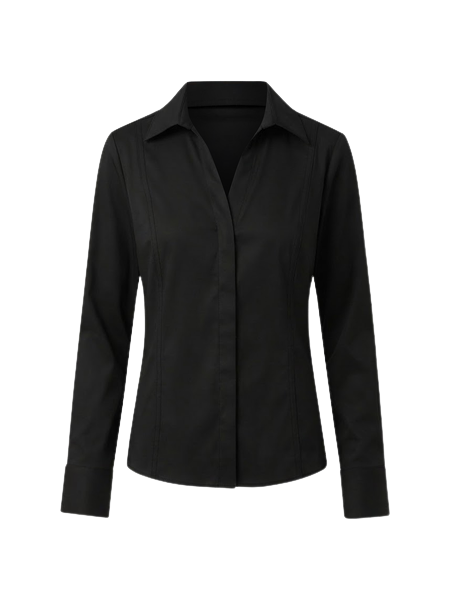 White House Black Market's Y-neck poplin shirt with seam details add a touch of tailored style with open collar line for easy styling. Made from easy-to-wear cotton stretch.