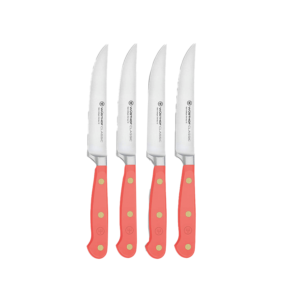These coral-handled steak knives jazz up your dining table with a pop of vibrant color. Wusthof's Classic series is known for its durability and high quality.