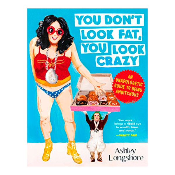 You Don’t Look Fat, You Look Crazy is a window into the world of Longshore’s irreverent, glamorous, and stunningly visual pop-art-filled life, where bedazzled flowers sit next to diamonds and Valium boxes, Jesus holds a black Amex and Wonder Woman dresses in Chanel. With tongue-in-cheek advice straight from her canvas, such as “There’s No Crying At Bergdorf’s,” “Always Ask For More,” and “What Would Blue Ivy Do,” Ashley’s honesty and DGAF attitude will grab you by your Givenchy lapels and hit you across the face with the donut you promised yourself you wouldn’t eat.