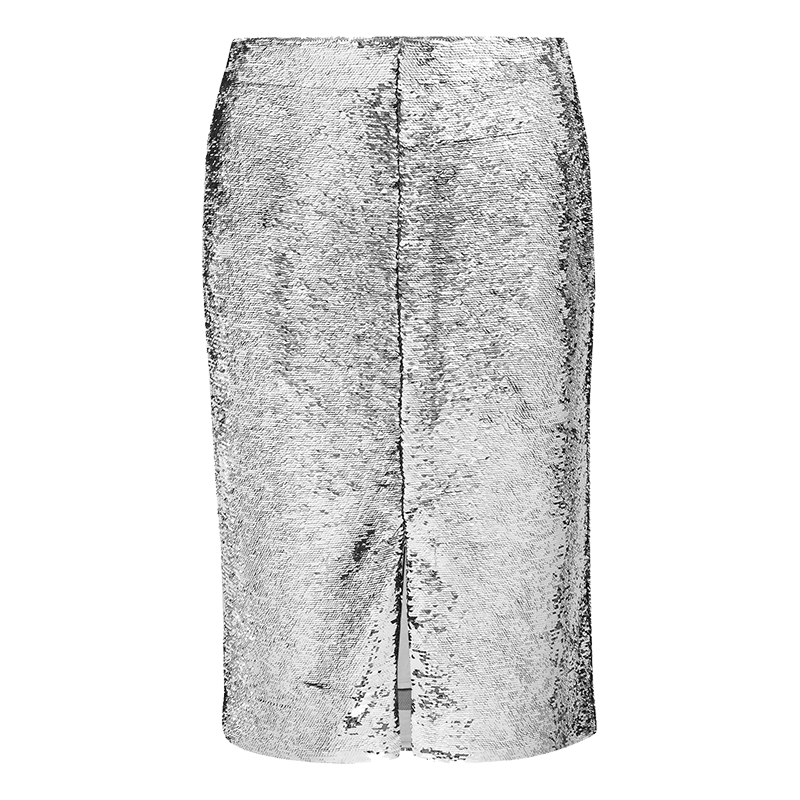 Cut from satin for a close fit, this gray sequined skirt is the perfect amount of sparkle to be paired with sneakers or heels.