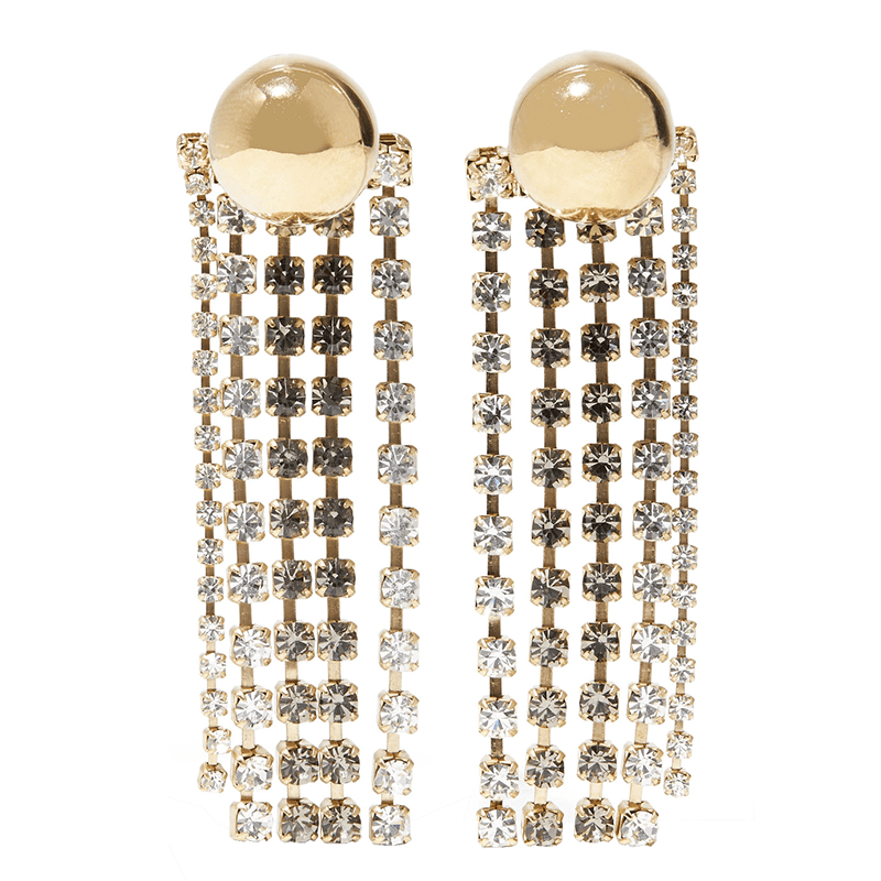 Made from gold-plated brass, these stunning danglers come with polished studs and crystal-encrusted fringing that move when you move. The perfect answer to all those holiday party invites, these will add a dose of fancy to a variety of evening looks.