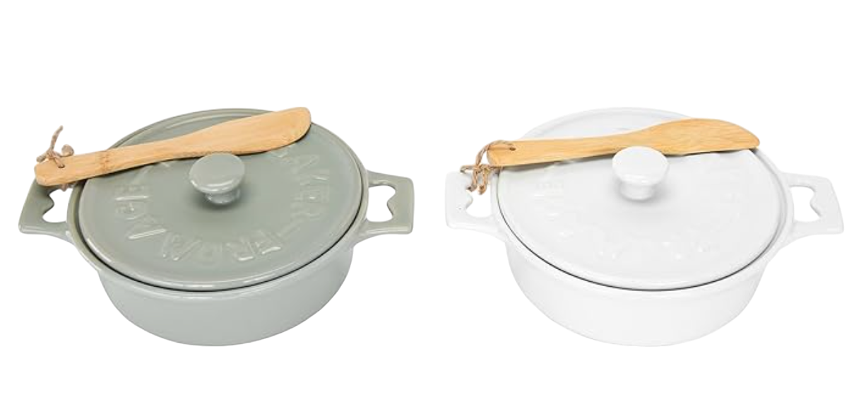 2. Creative Co-Op Brie Bakers with Lids & Wood Spreaders
