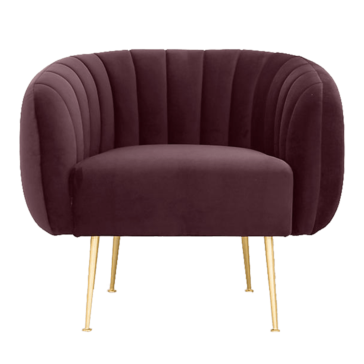 A refined silhouette gets a bold update in channeled plum velvet and slender brass legs. We can totally see ourselves reading, cocktailing, or Instagramming for hours on its plush, overstuffed, enveloping seat.