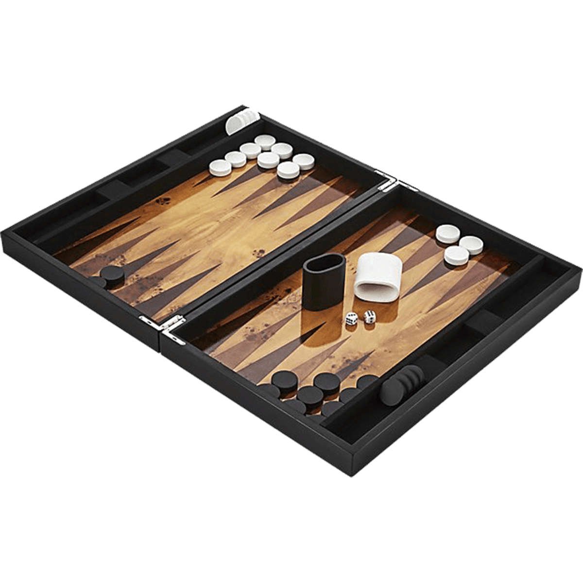 Whether or not you actually play backgammon is beside the point. This burl wood set is just as useful as a standout interior design piece as it is as a classic board game. Made with shiny, veneered wood and accented with black lacquer.