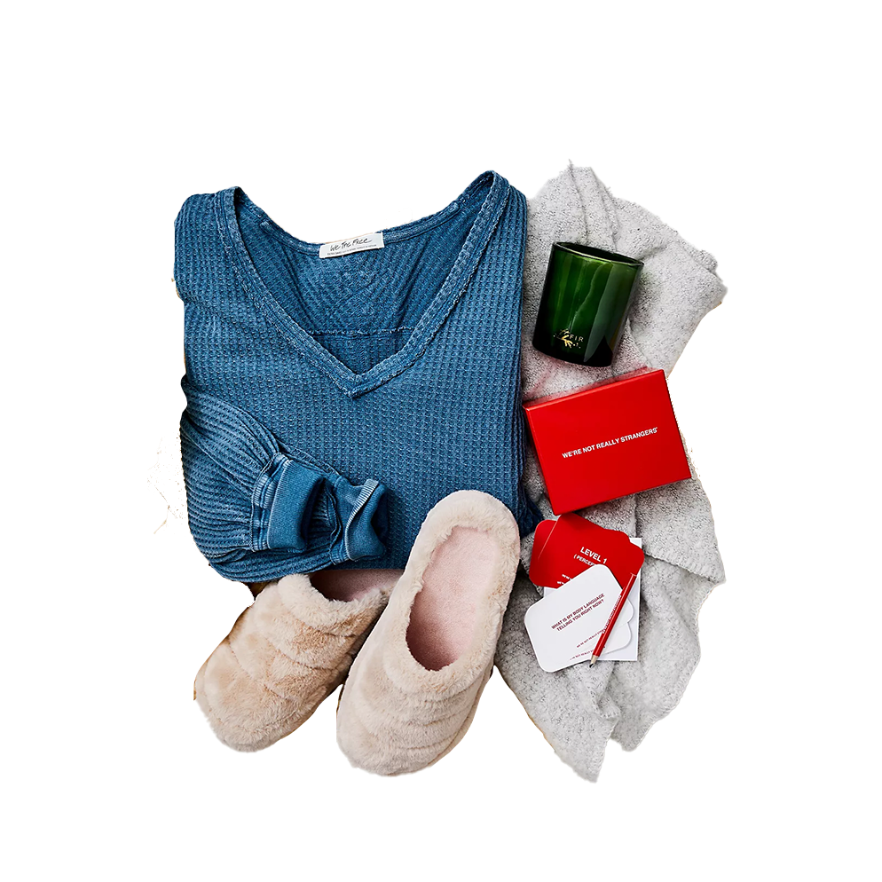 Free People Favorites Bundle We love this curated collection of Free People items that are perfect for a cozy night in, including a balsam fir candle, card game, platform slippers, scarf, and the brand's We The Free Coraline Thermal top.