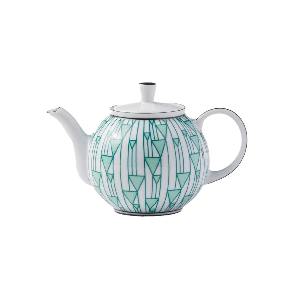 Prada Porcelain Teapot Prada's modernist geometric pattern inspired by a graphic motif created in 1904 by the famous Viennese architect Josef Hoffmann decorates this teapot made of the finest porcelain. In Vienna Green.