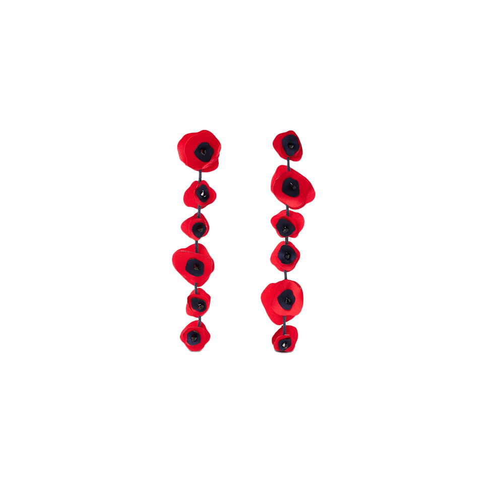 Cult Gaia Zelena Earring An organic vine of fabric flowers flow down the ear to the neckline, with a bold pop of color.