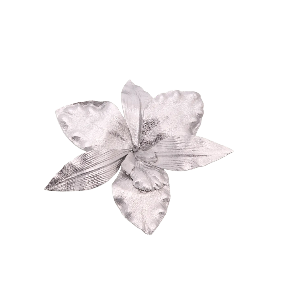 Gigi Burris Silver Orchid Barette From our favorite milliner Gigi Burris, the Orchid Barrette is a stunning and delicately crafted piece. The accent of this elegant barrette will add a shimmer of chic romance to your accessories collection.