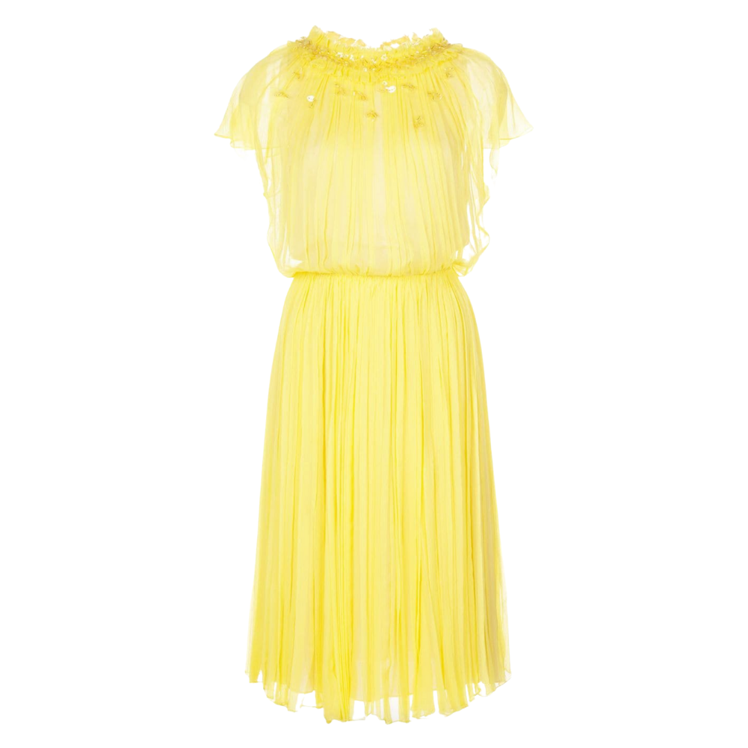 Fabrics were layered for fluidity and modernity. Tulle and organza were added over the foundations of dresses to create a blurred silhouette that didn’t have hard lines. Translucent fabric on transparent fabric created dimension.