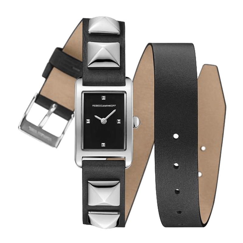 5. Rebecca Minkoff Moment Silver Tone Studded Leather Wrap Watch